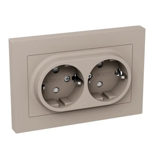 Электрическая двухместная розетка с заземляющим контактом и шторками скрытой установки в одну монтажную коробку цвет кремовый, винтовое подключение ЕКФ Эпика UP1-SOI-211
