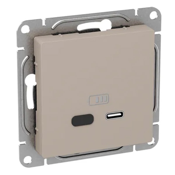 Быстрая одноместная зарядка USB TypeC скрытой установки цвет кремовый, Эпика UP1-SOI-USBCF