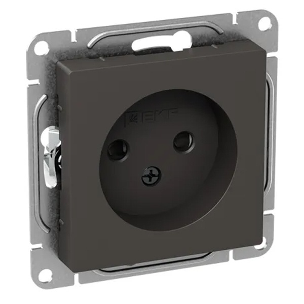 Электрическая двухполюсная розетка со шторками, скрытой установки цвет мокко, винтовое подключение ЕКФ Эпика UP1-SOM-101