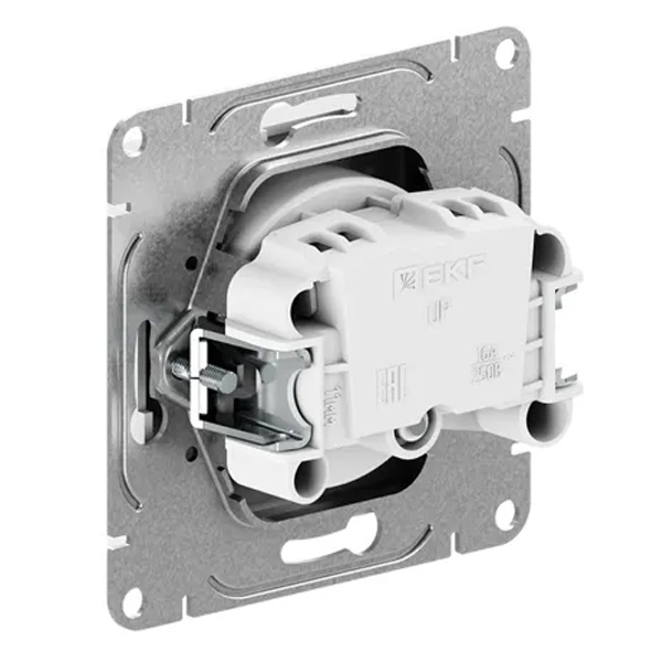 Универсальный механизм розетки совместим как с медной, так и с алюминиевой проводкой, обеспечивая надежное соединение и безопасную эксплуатацию.