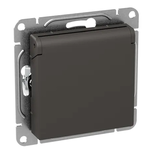 Электрическая розетка с защитным заземлением, шторками и откидной крышкой, скрытой установки цвет мокко, винтовое подключение ЕКФ Эпика UP1-SOM-111-44