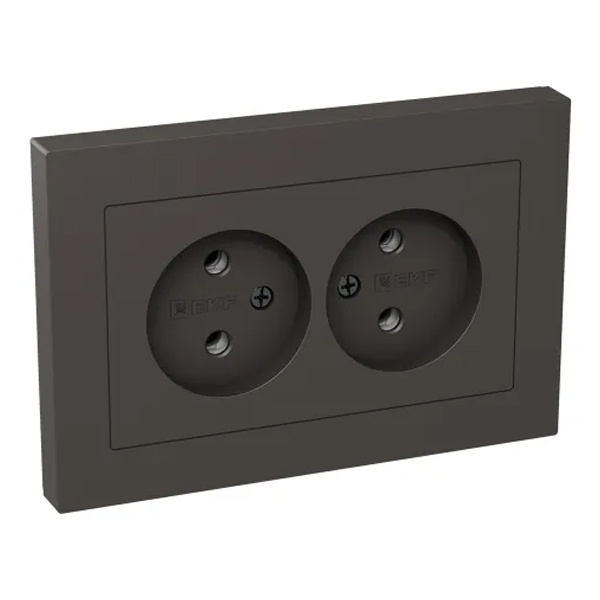 Электрическая двухместная двухполюсная розетка скрытой установки в одну монтажную коробку цвет мокко, винтовое подключение ЕКФ Эпика UP1-SOM-200