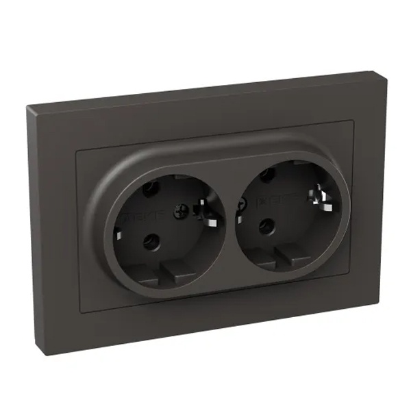 Электрическая двухместная розетка с заземляющим контактом скрытой установки в одну монтажную коробку цвет мокко, винтовое подключение ЕКФ Эпика UP1-SOM-210