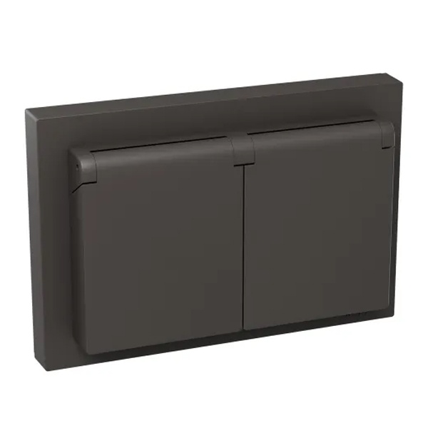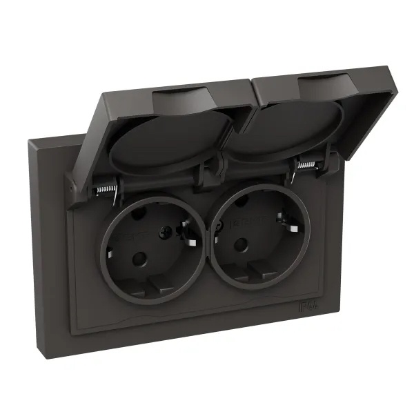 Электрическая двухместная розетка с защитным заземлением, шторками и откидной крышкой, скрытой установки в одну монтажную коробку цвет мокко, винтовое подключение ЕКФ Эпика UP1-SOM-211-44