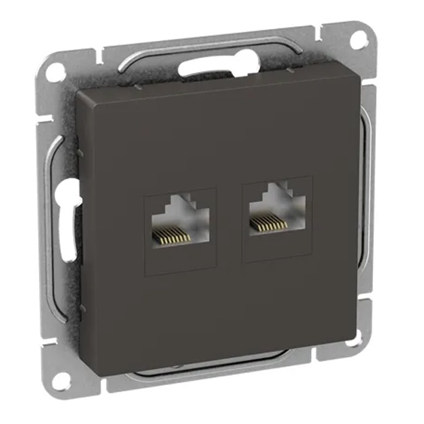 Двухместная информационная розетка RJ45 пятой категории скрытой установки цвет мокко, Эпика UP1-SOM-2RJ45-5