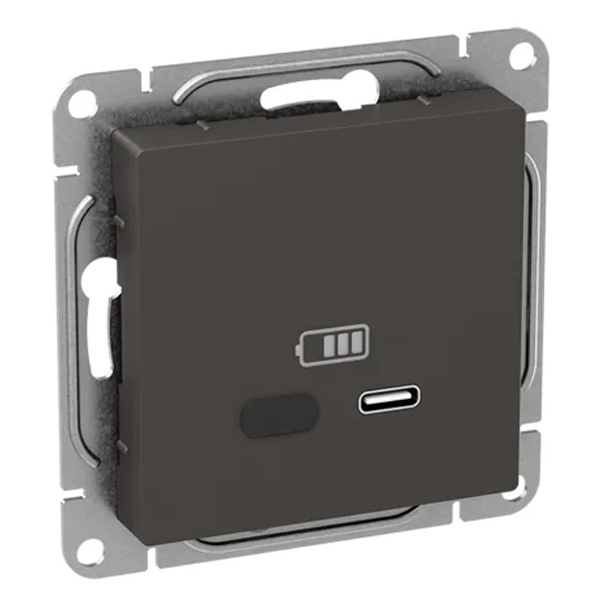 Быстрая одноместная зарядка USB TypeC скрытой установки цвет мокко, Эпика UP1-SOM-USBCF