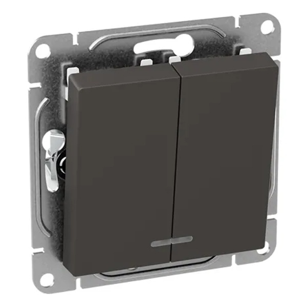 Двухклавишный выключатель с индикацией скрытой установки цвет мокко, винтовое подключение ЕКФ Эпика UP1-SWM-24