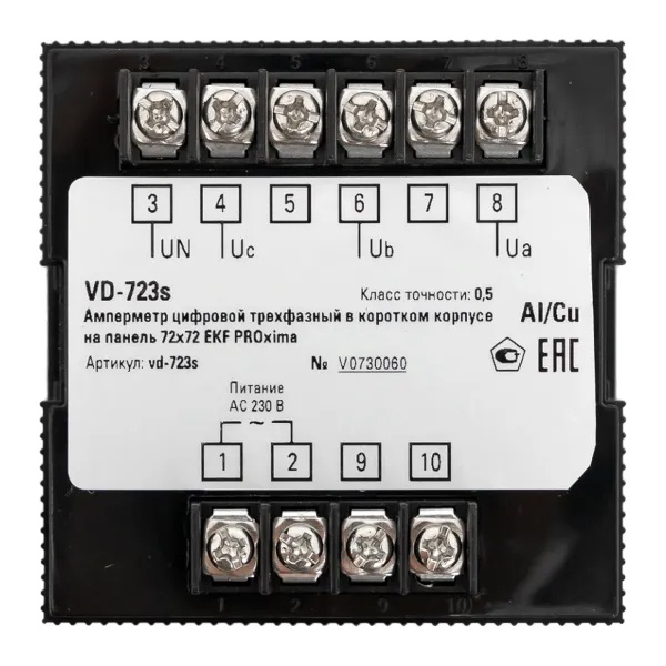 VD-723s Вольтметр цифровой на панель EKF трехфазный 30-500В АС 0,5 в коротком корпусе 72х72х65мм фото 5