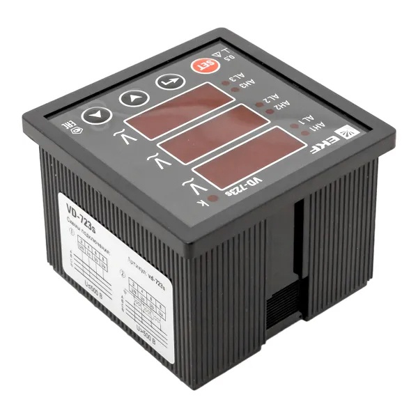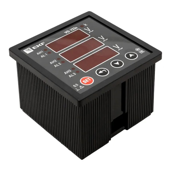 VD-723s Вольтметр цифровой на панель EKF трехфазный 30-500В АС 0,5 в коротком корпусе 72х72х65мм