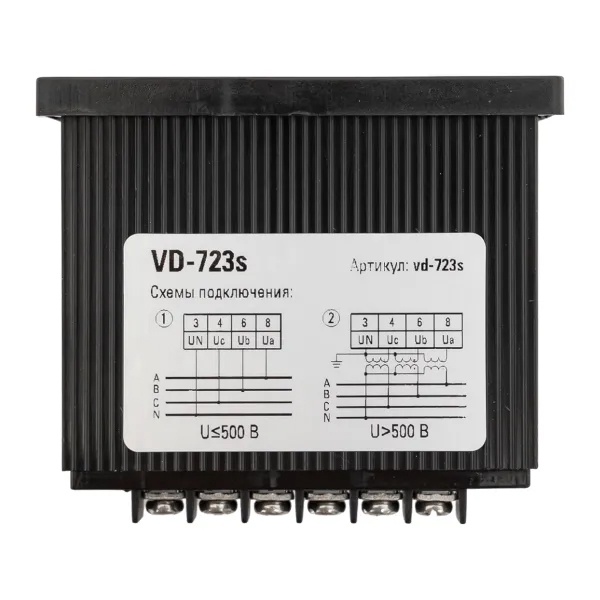 VD-723s Вольтметр цифровой на панель EKF трехфазный 30-500В АС 0,5 в коротком корпусе 72х72х65мм фото 6