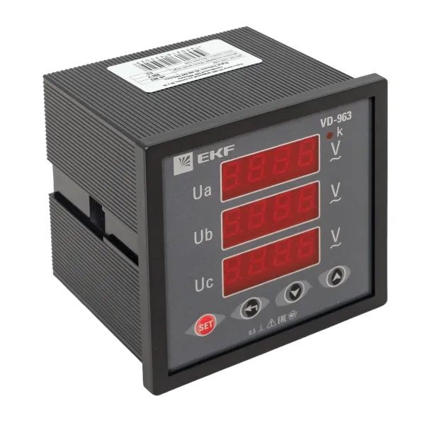 vd-963 Вольтметр цифровой на панель EKF трехфазный 30-500В АС 0,5 96х96х80мм