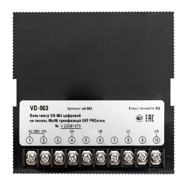vd-963 Вольтметр цифровой на панель EKF трехфазный 30-500В АС 0,5 96х96х80мм фото 10