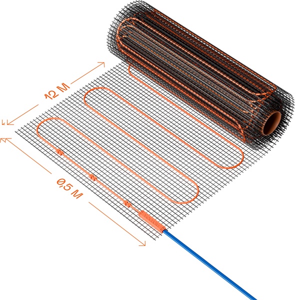 Электрический теплый пол 1200W размер 6м2 с сетевым кабелем, Voltum VLT01-200-6.0