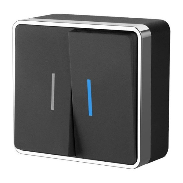 Настенный 2-клавишный электрический выключатель с индикацией черный Веркел IP20 открытой установки W5020135