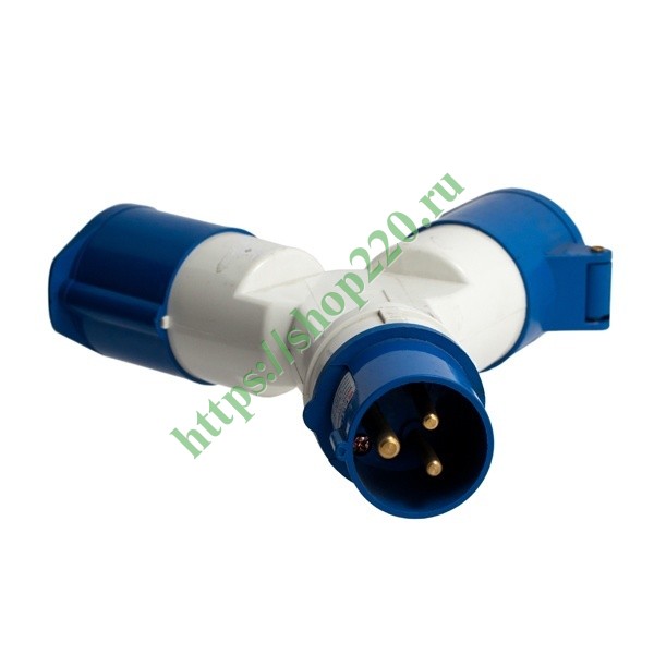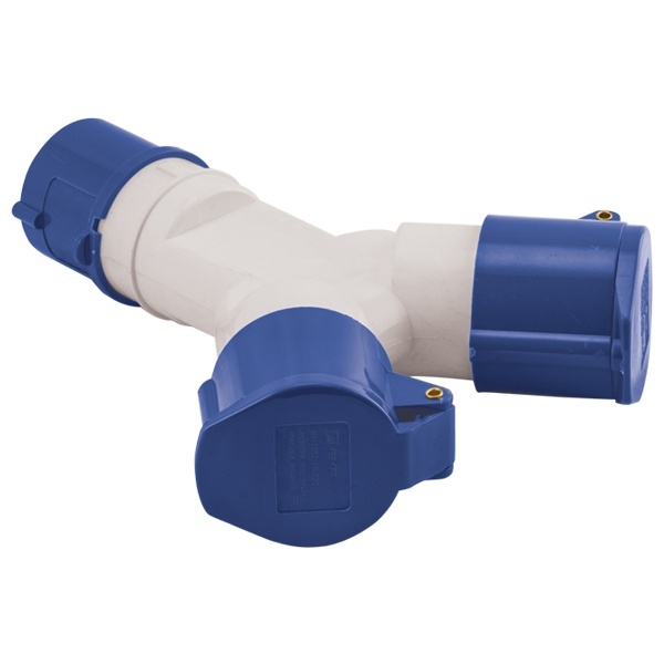 Двухлучевая розетка силовая, кабельная, переносная для подсоединения электрических устройств, номинальным током 16 Ампер, с полюсами 2P+PE ps-1012-16-220