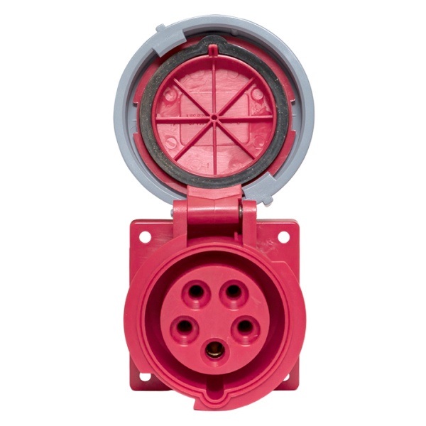 Влагозащищенная встраиваемая панельная силовая трехфазная розетка красного цвета с прямым подключением, 5 контактов, 400 Вольт 16А, Екф. ps-3152-16-380