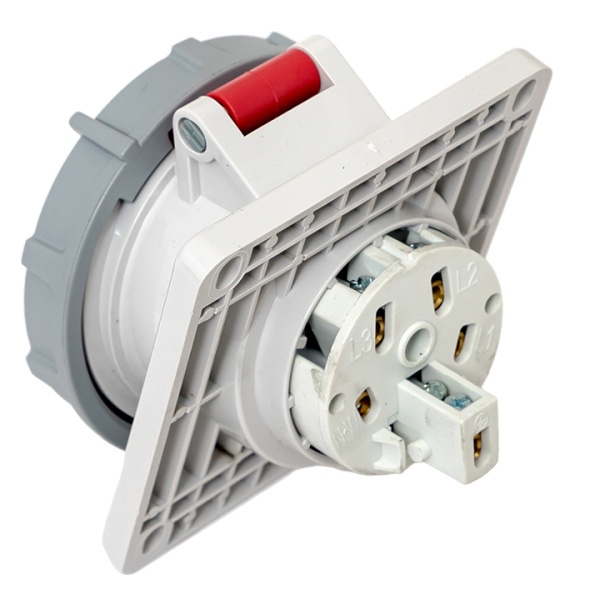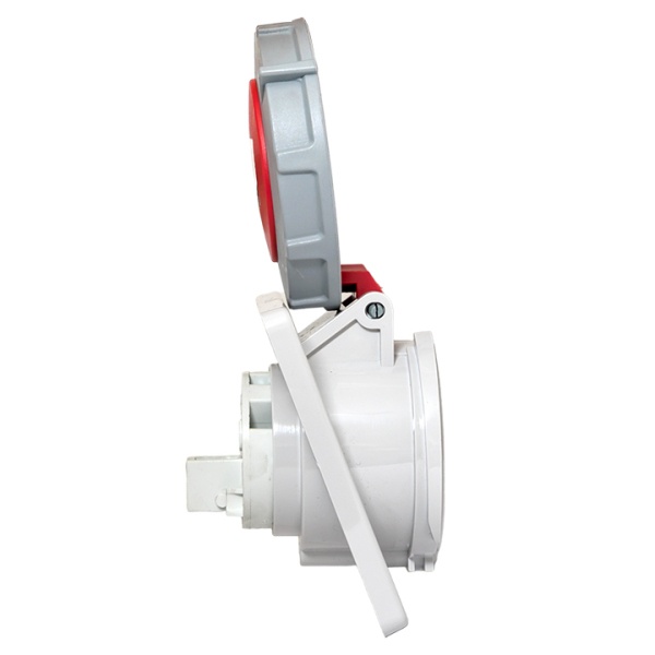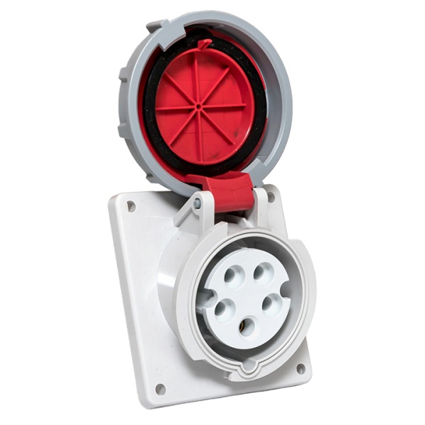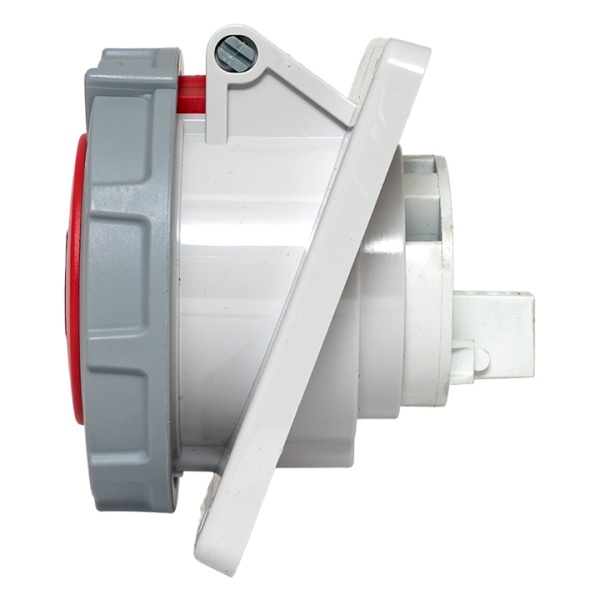 Влагозащищенная встраиваемая панельная трехфазная силовая розетка красного цвета с подключением под углом, 5 контактов, 400 Вольт 16А, Екф. ps-4152-16-380