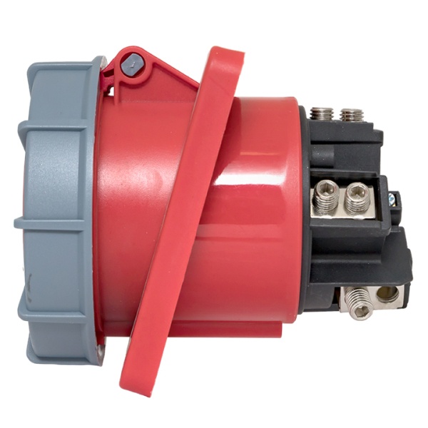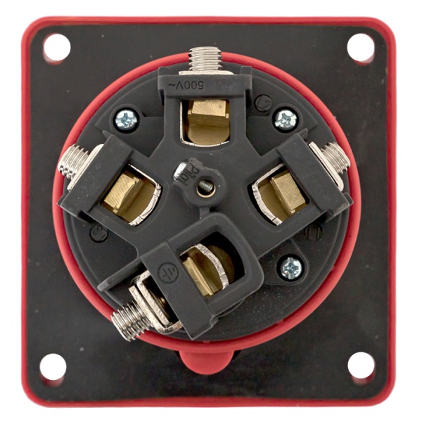 Влагозащищенная встраиваемая панельная силовая трехфазная розетка красного цвета с подключением под углом, 4 контакта, 400 Вольт 125А, Екф. ps-4442-125-380