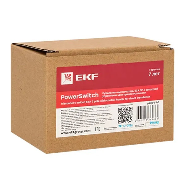 psds-63-3 Рубильник-выключатель EKF PowerSwitch 63A 3P c рукояткой управления для прямой установки