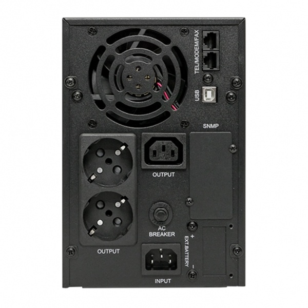 ИБП поддерживает автоматическую стабилизацию напряжения (AVR), быстро переключается на питание от аккумуляторов при пропадании сети и обеспечивает корректное завершение работы техники или поддержание ее работы в течение времени, зависящего от мощности подключенной нагрузки. Встроенный аккумуляторный блок выполнен на базе двух АКБ 12 В емкостью 7 Ач, подключенных в систему 24 В.