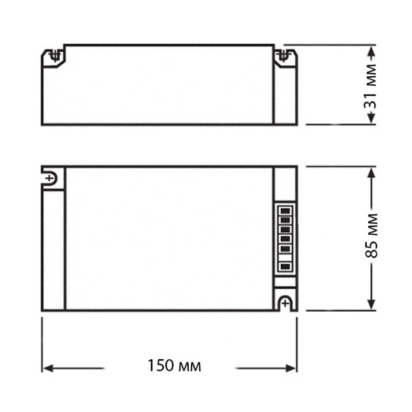 от короткого замыкания (при коротком замыкании во вторичной сети ЭПРА моментально отключает электропитание) от разрыва цепи (при разрыве вторичной цепи или выходе из строя лампы, ЭПРА включает режим защиты и отключает электропитание) от перегрева (при превышении максимально допустимых значений температуры окружающей среды или температуры корпуса ЭПРА автоматически выключается и снова включается после остывания)Области применения ЭПРА: