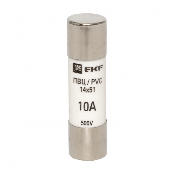 Предохранитель цилиндрический с плавкой вставкой на 10А, размером 14*51 мм, ЕКФ. pvc-14x51-10