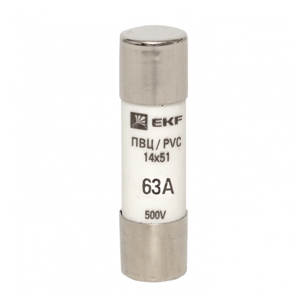 Предохранитель цилиндрический с плавкой вставкой на 63А, размером 14*51 мм, ЕКФ. pvc-14x51-63