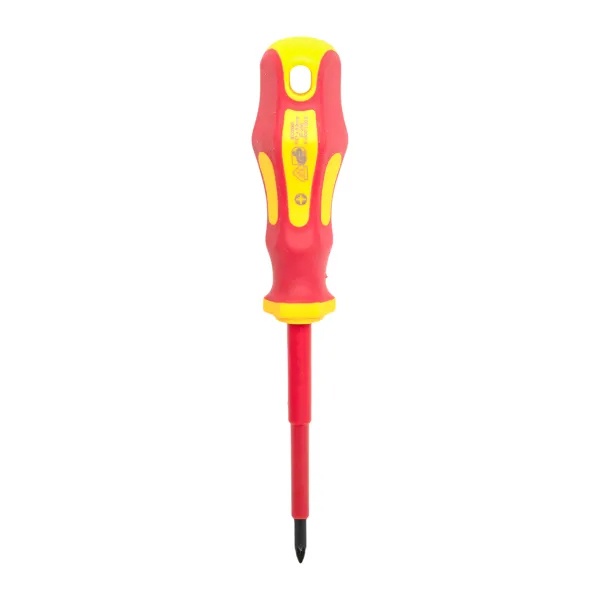 Диэлектрическая отвертка предназначена для работы с крепежом, который используется в электротехнических устройствах, находящихся под напряжением. Благодаря специальному изоляционному покрытию, исключается риск поражения пользователя током, даже когда напряжение достигает 1000 В.