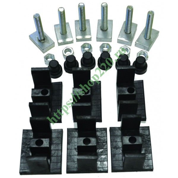 Данный комплект торговой марки DKC относится к аксессуарам для шинных трасс и представляет собой набор держателей для шин, с помощью которого создаются шинные трассы, и производится фиксация плоских медных и алюминиевых токоведущих шин. Его применение необходимо внутри сборных шкафов, а также для изоляции элементов, находящихся под напряжением, от корпуса и панелей. L-образный тип шинодержателя предназначен для изменяемого расстояния между шинами. Установка шин производится на ребро.В набор поставки включены:6 шинодержателей;6 T-образных болтов М6 для фиксации держателя к профилю;гайки типа М6;изолирующие колпачки;винты типа M6x25 для фиксации опорного профиля к каркасу шкафа.