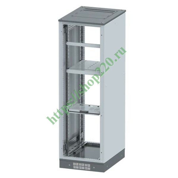Расстояние между вертикальными стойками составляет 19-дюймов. Отсутствие дверей не обеспечивает защитной функции и предусматривает размещение шкафа в сухом влагозащищенном месте.