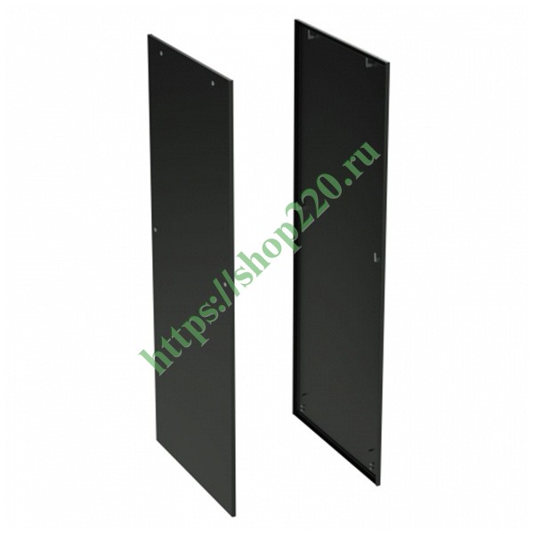 Боковые стенки представляют собой металлические пластины, сделанные из листовой стали толщиной 1,5 мм. Они обеспечивают ограничение доступа к установленному в шкаф оборудованию. Комплект панелей состоит из 2 элементов и монтажных аксессуаров, необходимых для крепления. Покрытие изделий имеет черный цвет RAL 9005 в виде порошковой краски. Отличительной особенностью боковых панелей является наличие специального уплотнителя по внутреннему периметру, обеспечивающего высокую степень защиты IP65 от проникновения влаги и пыли внутрь корпуса. Боковые стенки также оснащены 3 замками под ключ для ограничения несанкционированного доступа посторонних лиц к содержимому оболочки. Изделия подходят для сборки корпуса высотой 220 см и шириной 120 см.