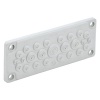 Модернизированный комплект панелей цоколя от компании DKC представляет собой универсальный аксессуар для напольных шкафов, подходящий к серии CQE и DAE. Он предназначен для установки сборной конструкции и организации ввода кабеля. Комплект фланцев обладает высокой несущей способностью, поэтому выдерживает серьезные статические нагрузки. Он состоит из 2 панелей и представляет собой прямоугольные элементы из стали толщиной 1,2 мм, которые имеют серое порошковое покрытие RAL 7011. Отличительной особенностью фланцев является возможность их установки как по ширине, так и по глубине шкафа, поэтому они выступают в качестве передней, задней и боковых панелей цоколя. Данные принадлежности длиной 80 см имеют высоту 10 см. В состав набора входят необходимые монтажные аксессуары, которые обеспечивают быстрое и легкое крепление элементов. Цоколь к шкафу является разборным аксессуаром и служит для удобства его установки. Он состоит из фланцев, которые соединяются 4-мя опорными углами. Вся конструкция успешно прошла необходимые испытания и способна удерживать напольный шкаф в сборе с встроенным силовым оборудованием весом до 1000 кг.