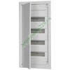 Распределительный корпус со встраиваемым типом установки представляет собой модель из серии Resi9 KV от известного производителя электрооборудования Schneider Electric, которая обладает компактным внешним видом и допускает размещение модульной аппаратуры защиты и управления в количестве до 56 единиц. Оборудование устанавливается в 4 ряда по 12 модулей и имеет в каждом ряду дополнительно по 2 запасных места. Оно рассчитано на номинальную нагрузку тока до 63 Ампер, поэтому данный тип щитов эксплуатируется в небольших коммерческих объектах и жилых зданиях. Благодаря продуманной конструкции обеспечивается легкий ввод кабелей и достаточное пространство для их подключения к устройствам. Внешне шкаф окрашен в белый цвет RAL 9016, обладает степенью защиты IP30 и классом ударопрочности IK07. Его каркас выполнен из самозатухающего пластика, устойчивого к высоким температурам до 650 градусов, а дверная рама и сплошная дверь из листовой стали с гальваническим покрытием. При этом дверца обладает современным дизайном и может быть установлена как на правой так и левой стороне рамы. Обязательным условием для монтажа внутреннего корпуса является наличие подготовленного пространства в бетонной стене, которое для данной модели должно иметь следующие параметры:ширина – 330 мм;высота – 710 мм;глубина – 90 мм.