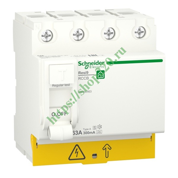 Четырехполюсный выключатель дифференциального тока 63А Шнайдер Электрик типа A-S с выдержкой времени на отключение R9R63463