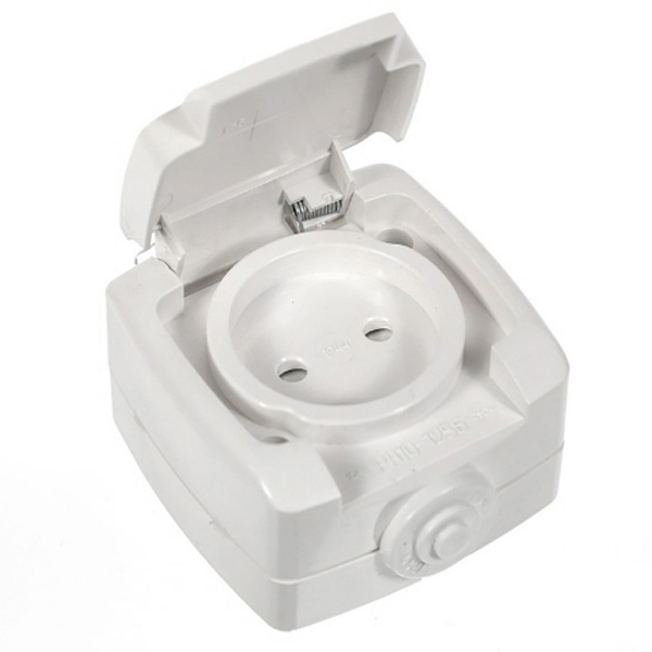 РОНДО IP44 О/У РОЗЕТКА без заземления со шторками, 10А, 250В, БЕЛЫЙ. Россия