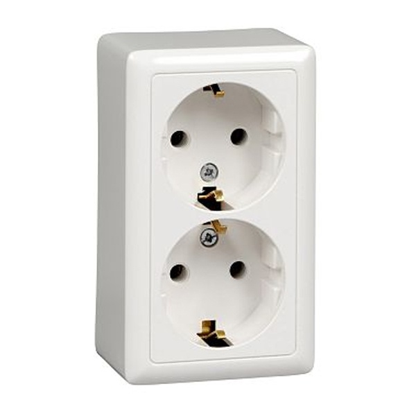 Электрическая внешняя белая розетка Систем двойная силовая 16А электросети 220В IP20 открытой установки на стену RA16-238I-B
