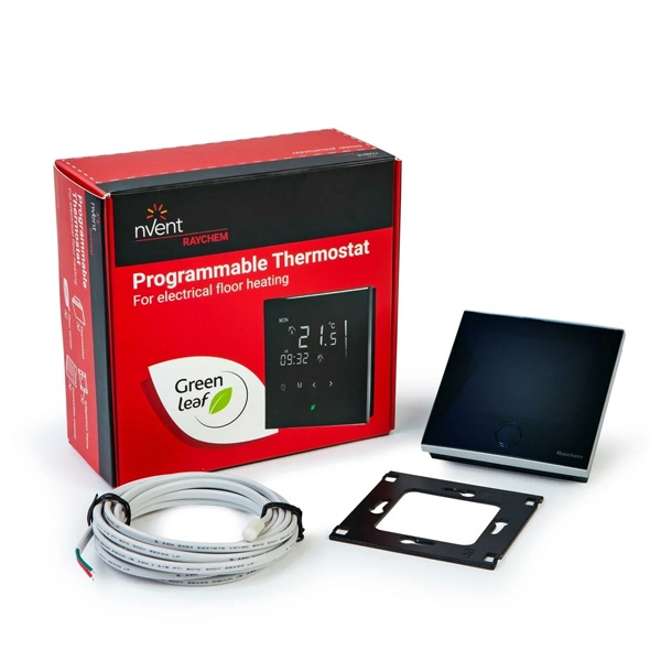 Программируемый терморегулятор Raychem Green Leaf с большим дисплеем предназначен для использования в системах электрообогрева полов. Служит для управления системой электрообогрева пола, обеспечивая максимально возможный комфорт и минимальное потребление электроэнергии. Термостат может работать в режимах регулирования по температуре пола, по температуре воздуха в помещении и по температуре воздуха в помещении с ограничением максимальной температуры пола.