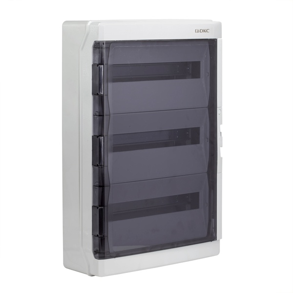 Если нужен настенный щит, который не боится пыли, брызг и “полевых” условий, DKC RAM base RB54W6TGD обычно закрывает вопрос без лишних компромиссов. Это корпус на 54 модуля (3 ряда по 18) с прозрачной дверью и клеммным блоком на 63 А — удобно, когда важно и защитить автоматику, и быстро понимать, что происходит внутри.
