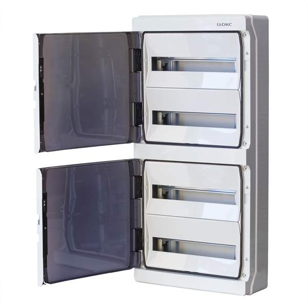 • Щиток настенный DKC RAM base (4х18) на 72 модуля прозрачная дверь клеммный блок 63А серый IP65