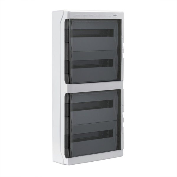 RB72W6TGD Щиток настенный DKC RAM base (4х18) на 72 модуля прозрачная дверь клеммный блок 63А серый IP65