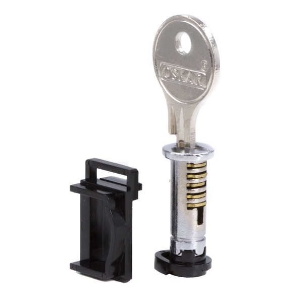Данный металлический замок предназначается для установки в дверцу распределительного щитка, в котором установлены различные коммутационные приборы. Его задача заключается в ограничении доступа к этим устройствам. Представленный замок имеет форму цилиндра со шляпкой. Изделие изготовлено на предприятиях известной российской электротехнической компании ДКС.
