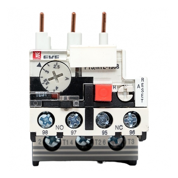 Реле электротепловое серии РТЭ является электрическим устройством, имеющим собственное потребление энергии. Электротепловое реле серии РТЭ предназначено для защиты трехфазных асинхронных электродвигателей с короткозамкнутым ротором от токовых перегрузок недопустимой продолжительности, в том числе возникающих при выпадении одной из фаз. Устанавливается непосредственно на контакторах серии КМЭ. Для защиты от короткого замыкания должны быть предусмотрены предохранители или автоматические выключатели на соответствующее значение номинального тока срабатывания.