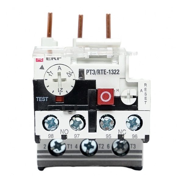 Реле электротепловое серии РТЭ является электрическим устройством, имеющим собственное потребление энергии. Электротепловое реле серии РТЭ предназначено для защиты трехфазных асинхронных электродвигателей с короткозамкнутым ротором от токовых перегрузок недопустимой продолжительности, в том числе возникающих при выпадении одной из фаз. Устанавливается непосредственно на контакторах серии КМЭ. Для защиты от короткого замыкания должны быть предусмотрены предохранители или автоматические выключатели на соответствующее значение номинального тока срабатывания.