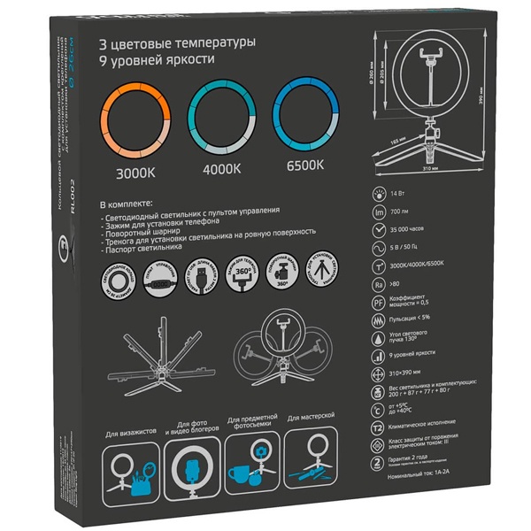 Кольцевые Светильники Gauss Ring Light прекрасно подойдут для макросъёмки. Кольцевой светильник даёт необходимый мягкий свет и более сфокусированное освещение по сравнению с лайтбоксом. Детали объекта съёмки при таком освещении лучше выделяются. Такие светильники универсальны. Они могут использоваться:для акцентного освещения; в качестве обычного источника освещения; в качестве декоративного элемента в кадре. В линейке Gauss Ring Light представлено три модели разного размера. Пульт управления позволяет не только включить светильник, но и настроить яркость свечения и при необходимости сменить цветовую температуру свечения от нейтрально-тёплого (3000К) до холодного (6500К) света.