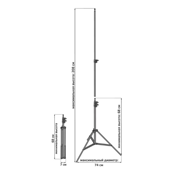 Алюминиевая раздвижная тренога Гаусс для кольцевых светильников, высотой 680-2080 мм RL100