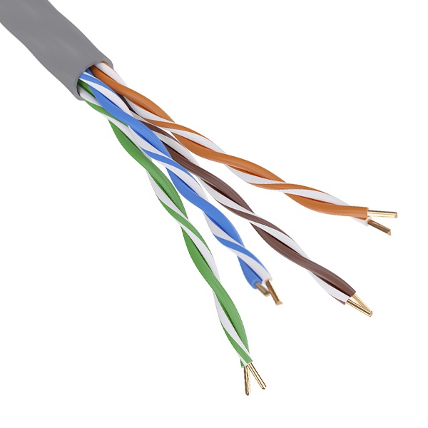 Неэкранированная витая пара, материал проводника высокоочищенная бескислородная медь. Материал оболочки – Полиолефин (PЕ).