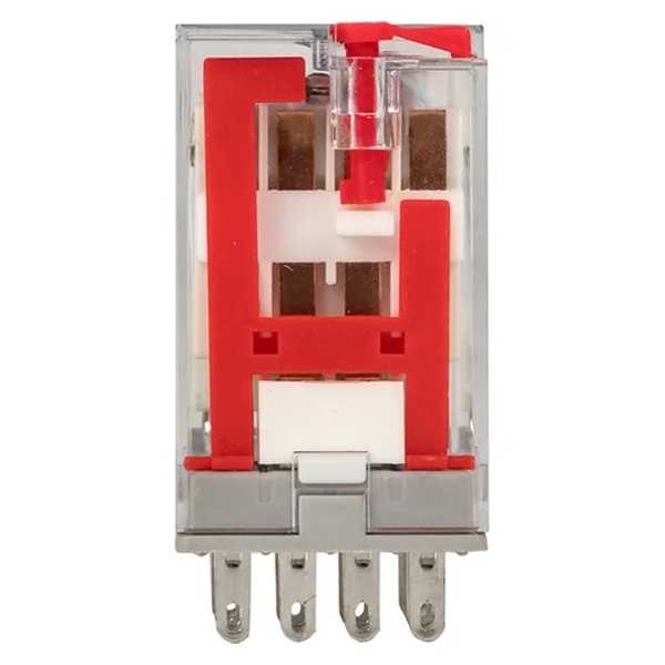 Промежуточное реле с 4 перекидными контактами и катушкой управления 230 Вольт нагрузкой 5А, ЕКФ серия Аверес, кнопка проверки и индикация rpat-22-4-230AC