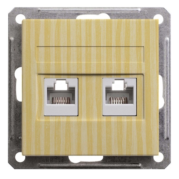 W59 Розетка двойная RJ11+RJ45, 160В, 1А, категория 5E, механизм, сосна. серия продукта: W59 - тип устройства или его аксессуаров: компьютерная/телефонная розетка - комплектация изделия: механизм - оттенок цвета: сосна - тип покрытия: окрашенный - монтаж: винтами, лапками - тип разъема: данные : RJ45 (keystone) Кат.5e U/UTP, телефон : RJ11. Преимущества: Под стать характеру, Доступная цена, Современный дизайн, Безопасность монтажа и эксплуатации, Надежная установка в любые монтажные коробки, Большой выбор функциональных возможностей и цветовых сочетаний, Поставка изделий как без рамок – механизмы с лицевыми панелями, так и в сборе – готовое решение, Соответствие ГОСТ Р, Удобная упаковка.. применения: - Для недорогого ремонта, Для офисов класса В, Для гостиниц..