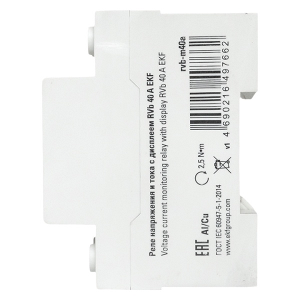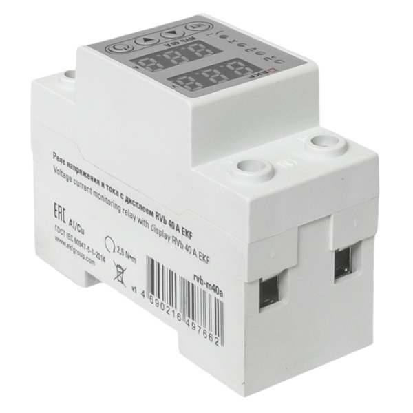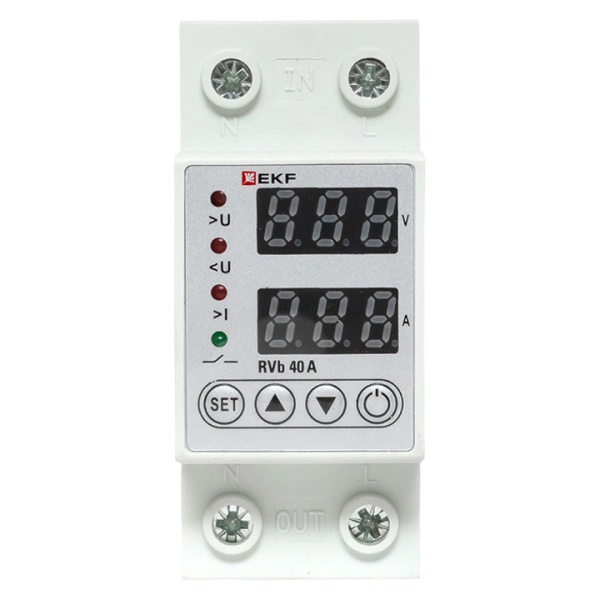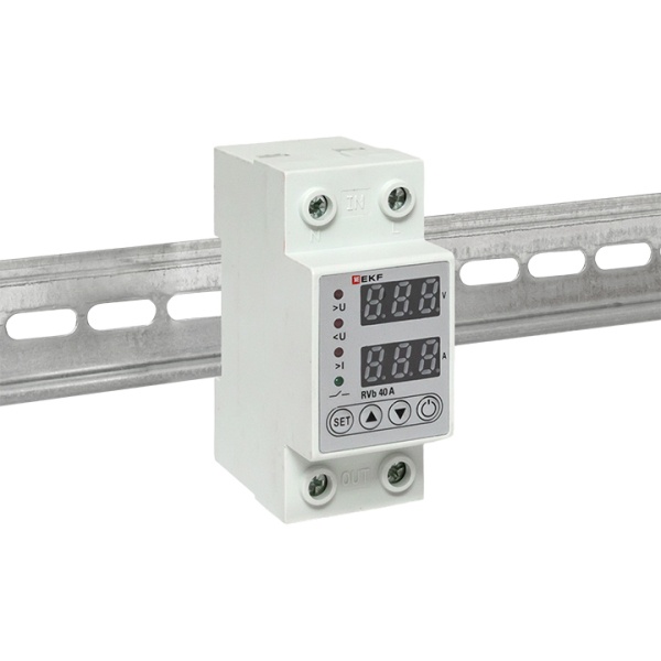 Реле контроля напряжения в однофазной сети ЭКФ PROxima, 40 Ампер, с цифровым дисплеем rvb-m40a