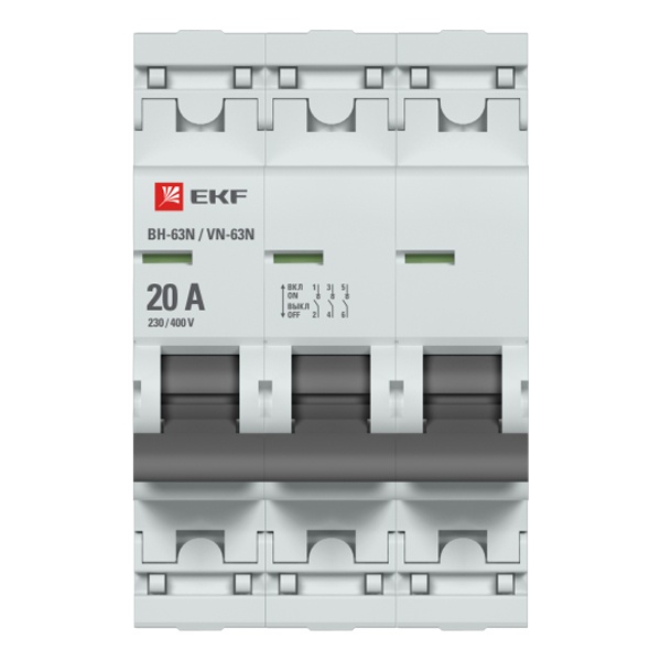 Трехполюсный выключатель нагрузки ВН-63N EKF на дин-рейку, 20 Ампер S63320